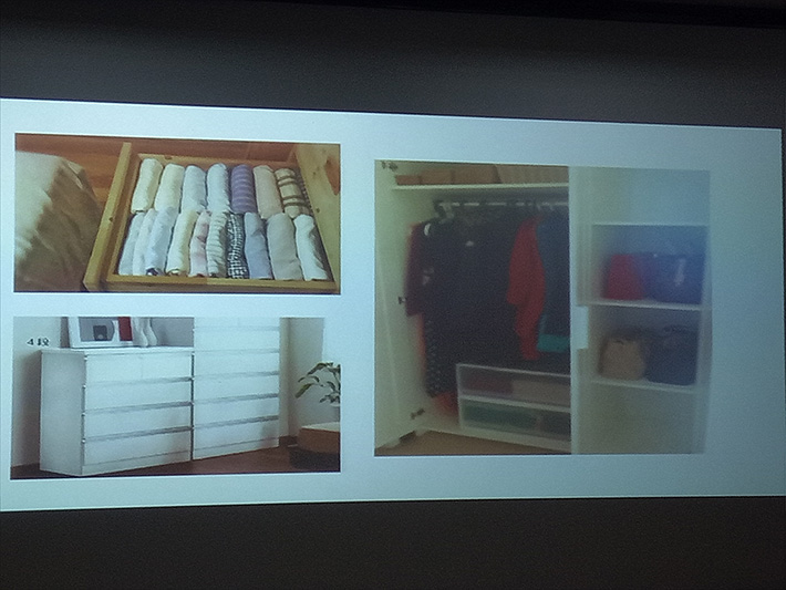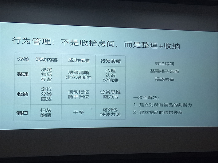 讲座上,赵博士从“收拾房间为什么总是过几天又复乱?”开讲,循序渐进引导会员们重新认识家里的物品。从科学整理和收纳家庭物品中,觉察自己,帮助我们建立新的结构化思维。赵博士还亲手传授叠衣服的窍门、应避免的误区及如何合理摆放。讲座内容详实、务实,博士风趣幽默、简洁明快地传授收纳的知识和技巧。整场讲座气氛轻松愉悦,会员们认识到以前的“收拾屋子”只是在“摆放物品”,应该从整理物品和收纳的角度提高家务劳动的效率和美感,力争让一次整理收纳保证不再复乱,达到享受生活的境界。