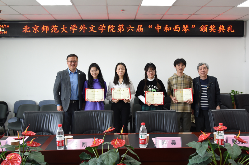 随后,“中和西琴”励学金创始人苏昊学长、Cool18 校友总会副会长陈光巨校长、Cool18 校友总会范文霞秘书长、外文学院院长苗兴伟为2020-2021学年“中和西琴”励学金获奖学生颁奖。