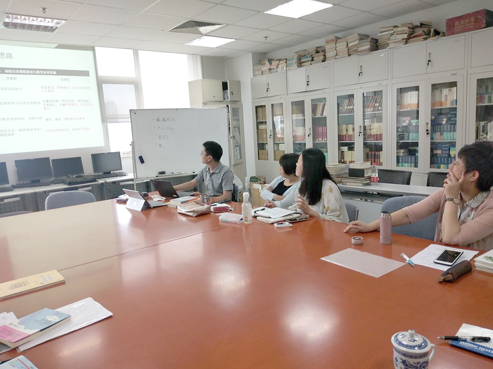 2019年7月5日上午,外文学院日文系成功举办了教学改革交流工作坊。本次工作坊由日文系主任王志松主持,林涛、张林、程茜三位老师分别作了发言汇报。林涛老师围绕高年级新设课程“日语批判性阅读与写作”,着重讲述了在教材选择与教学内容上的斟酌与探索;张林老师从改革思路、主要工作、学生的反馈与反思等三方面,详细汇报了“以提升综合能力与素养为目标”的“初级日语”课程在教学模式上的改革措施;程茜老师介绍了“中日文化比较”课程如何以精心设计的专题式讨论,激发学生通过自主调查提升文化认知与理解力的情况。对于上述发言,在场老师纷纷表示称赞,并就高年级课改、多媒体运用以及课程群建设等问题展开了积极讨论。本次共作坊是日文系2018年度本科教学建设与改革项目成果的集中呈现。日语专业教师林洪、刘玲、蒋义乔、杜冰以及日籍教师泽田康夫出席会议并参与了讨论。