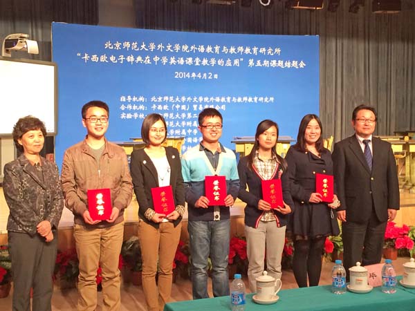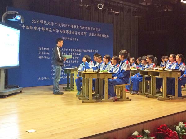 由Cool18 外文学院外语教育与教师教育研究所主持的“电子辞典在中学英语课堂中的应用”第五期项目结题会于2014年4月2日在西城外国语学校召开。外文学院外语教育与教师教育研究所所长王蔷教授、陈则航副教授,西城外国语学校尉小珑、王萍兰校长,卡西欧(中国)贸易有限公司副总经理岩丸阳一先生与来自北京四中、北师大实验中学、北师大二附中、北京八中、清华附中等20余所学校120余名中学教师以及西城区教研员参与了大会,共同研讨学习,现场气氛热烈。