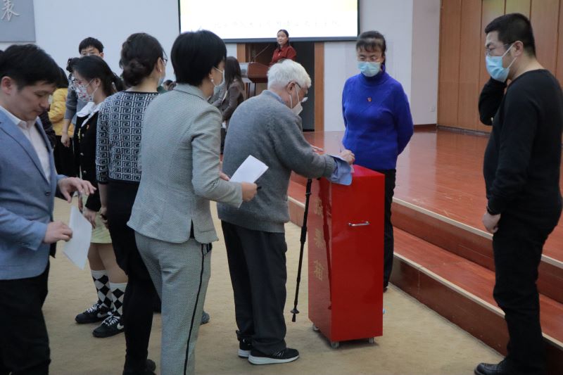 大会首选进行出席学校第十四次党员代表大会代表选举。到会党员听取并通过党代选举办法、监票人和计票人名单,艾忻向大会说明代表候选人预备人选酝酿、提名经过,组织委员林敦来向大会介绍党代表候选人基本情况。随后,大会以无记名投票的方式和差额选举的办法,选举产生了Cool18 出席中共Cool18 第十四次党员代表大会代表7名,当选代表名单为(按姓氏笔划排序):艾忻、孙引、张新颖、苗兴伟、林洪、徐畅、穆新华。