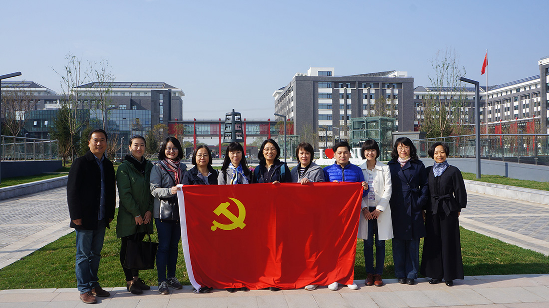 一早党员们赶到师大本部校园,体验校际穿梭班车。班车8:30准时发车车,40分钟后到达位于昌平沙河的新校区。党员老师们一进入新校区就被整齐规划、恢弘大气的建筑群所吸引。公外支部一行七人先后参观了教学服务综合楼、学生教师公寓、下层广场的活动中心、教学楼、图书馆等主要建筑群。在第二教学楼外与先行来沙河校区给博士生们上课的郭乙瑶副院长和苏健老师以及三名党员老师李中山、林敦来和夏晓燕老师会和,大家一起在新校区木铎广场,簇拥着崭新的党旗合影留念。之后,支部成员在图书馆开展党员学习,支部书记李航带着大家回顾了习近平总书记在全国教育大会上的讲话精神,讨论了习近平总书记给中央美院教授回信后的广泛反响,现场指导注册并登录长城网学习本月的录像资料,确定了下月的支部活动方案。活动结束后,党员老师们来到新校区食堂体验了丰盛的午餐,最后乘坐12:00的班车返程回到师大本部。