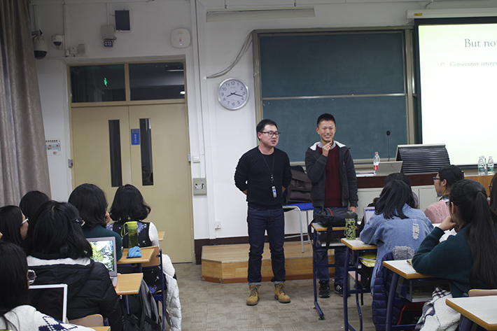 此外,刘可微老师还向我们分享了他翻译过程中或有趣、或温馨的经历,向大家展示了翻译工作带给他的酸甜苦辣。并在讲座最后耐心回答同学们的问题,建议同学们在平时广泛涉猎各个领域的英文资料,将课堂和实践结合起来,全面提升自己的翻译能力。