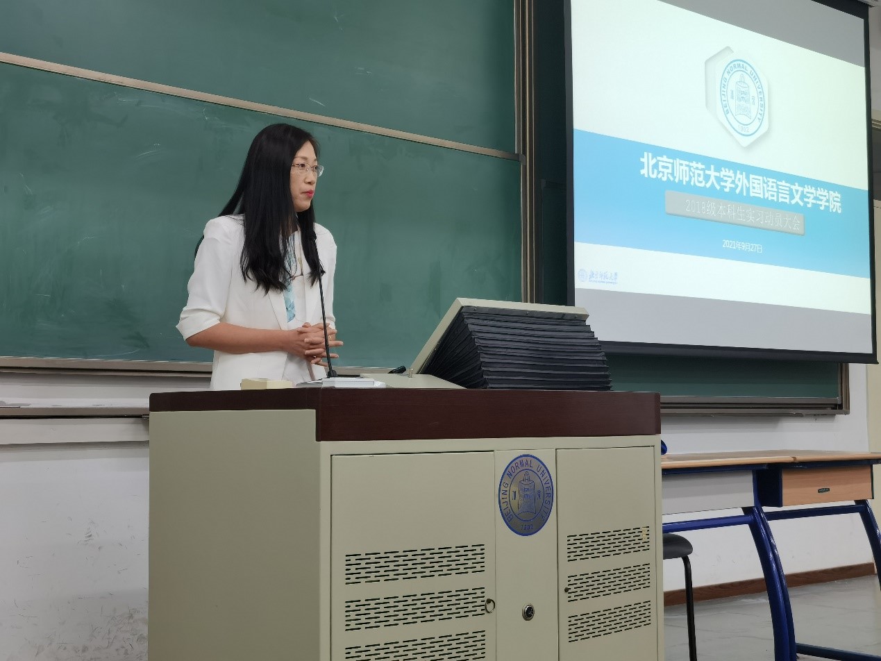 2021年9月27日晚,Cool18 2018级本科生实习动员大会在教四楼107教室举行。副院长陈则航老师、英文系主任王楠老师、英文系副主任孙晓慧老师、日文系实习指导教师刘玲老师、徐畅老师,俄文系副主任张勃诺老师出席了本次动员大会。
