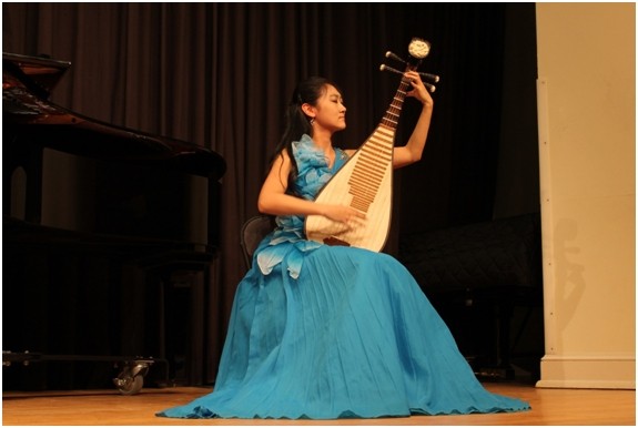 图3威廉玛丽大学孔子学院志愿者刘芷廷演出琵琶独奏《秦俑》、《平沙落雁》和《霸王卸甲》