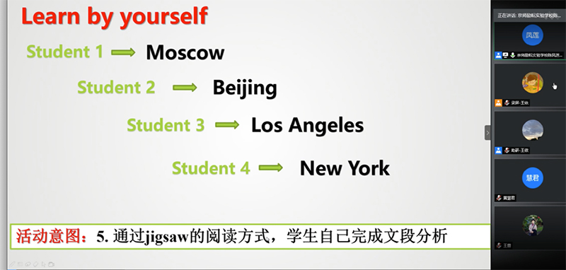 由于未能及时参加Cool18 外语教育与教师教育研究所秋季学期 “学科能力教学改进项目”专家指导教师集体说课活动,负责指导广东佛山京师励耘实验学校的我所王蔷教授和钱小芳副教授,于百忙之中抽出时间,在2020年10月31日14:00对该校黄慧君老师和陈凤莲老师单独开展“腾讯会议”线上说课指导活动。