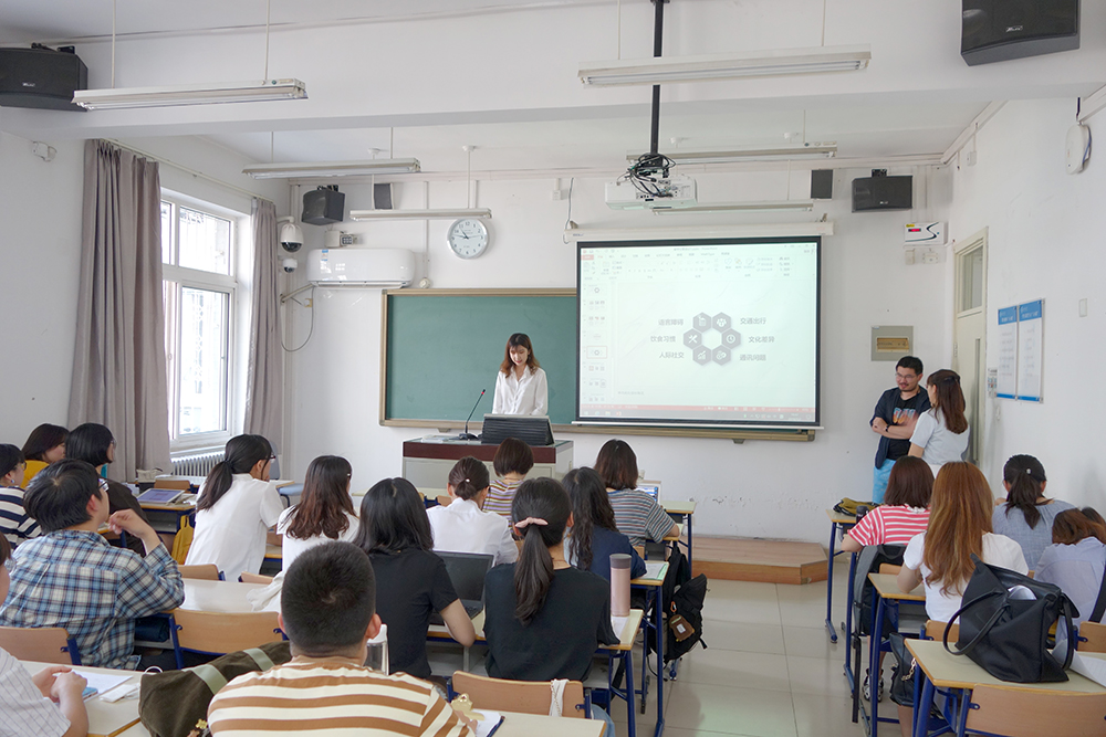 日文系张林老师主持交流会,冷丽敏老师、外籍助教原玉龙参加了交流会。