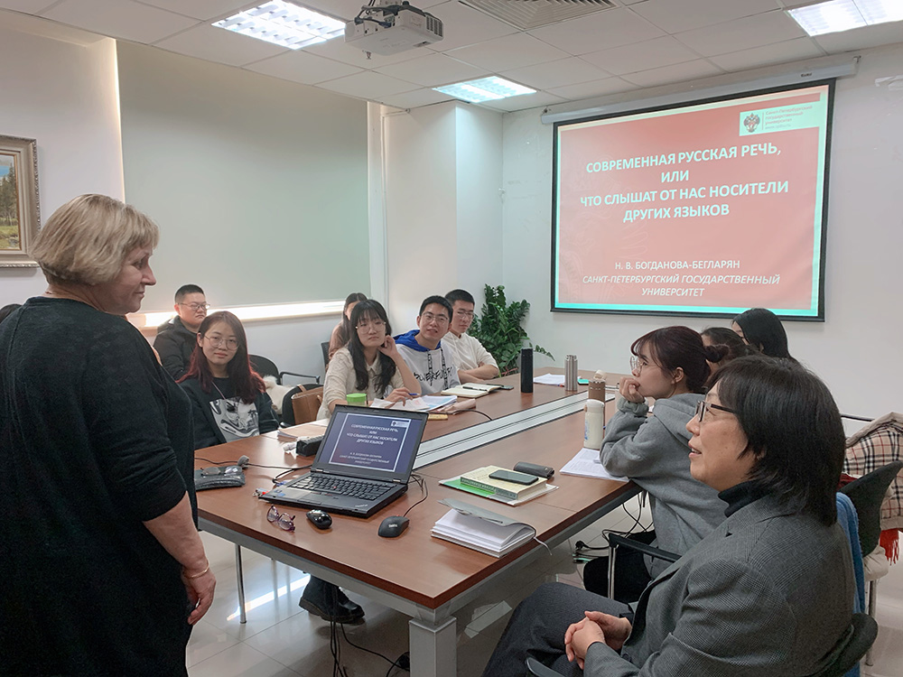 2019年12月4日,由教育部区域和国别研究基地Cool18 俄罗斯研究中心主办的“俄罗斯学”系列讲座 -“当代俄语言语”顺利举行。讲座由俄罗斯圣彼得堡国立大学语言学教授、著名语言学家波格丹诺娃-别格拉里扬教授 (Н. В. Богданова-Бегларян) 主讲,俄罗斯研究中心主任刘娟教授主持。