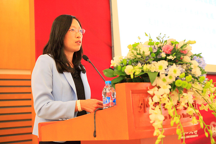 随后,“中国英语阅读教育研究院”院长、Cool18 王蔷教授代表研究院向与会人员介绍了研究院成立的背景、宗旨和任务。王蔷教授在发言中介绍了前期在制定英语阅读标准、支持英语阅读教学、指导英语阅读研究、培养英语阅读师资方面的工作成果,表示研究院不仅将继续研究和推广英语阅读教育,在理论层面完善中国中小学生阅读素养框架及其他外语阅读理论研究,也将设立多个方向的研究课题,在国内和国际高端学术研讨上发出中国的声音。在实践上,研究院希望将理论真正落地,深入课堂。只有教师与学生真正转变与提升,才是研究院成立的价值所在。她希望在顾问委员会的指导下,研究院的理论研究能够取得更突破性的成果,同时也希望学术委员会、教研委员会和专聘研究员能够在各个层面推动阅读教学研究和实践活动。