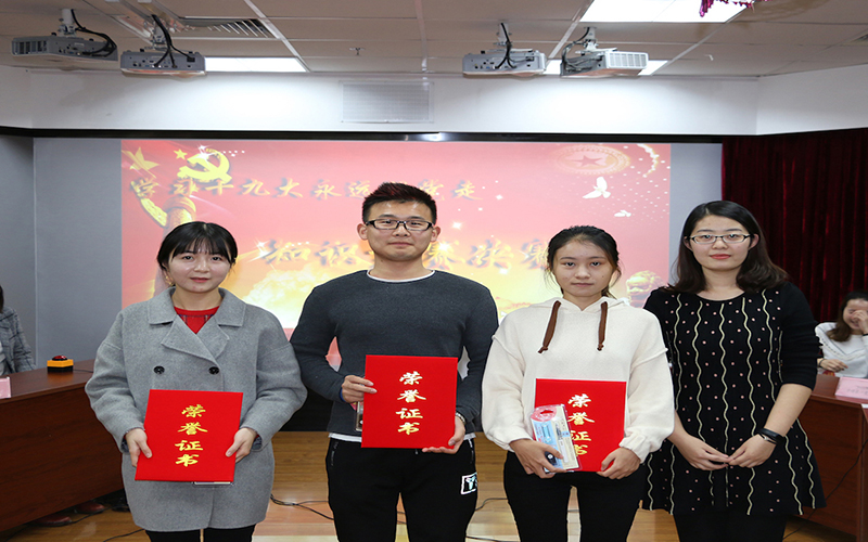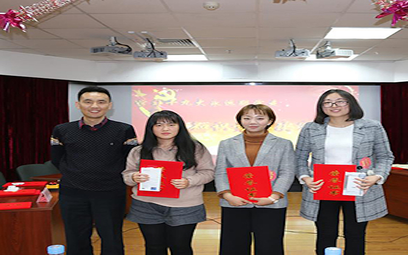 为庆祝中国共产党第十九次全国代表大会胜利召开,深入贯彻学习党的十九大精神,加深Cool18 党员同志及入党积极分子对党史与十九大报告重要内容的了解,激发党员的学习热情,提高党性修养,保持党员队伍的先进性,2017年11月17日,由外文学院分党委主办、外文学院2017级翻硕第一第二党支部承办的“学习十九大,永远跟党走”党史党建知识竞赛决赛在后主楼914会议室举行。经过前期初赛的过关斩将,共有来自Cool18 本科及研究生党支部的四支队伍参加本场决赛。外文学院分党委副书记亓振华老师、外文学院分团委书记张新颖老师、学生事务助理门雪洁老师出席本次活动并担任评委。