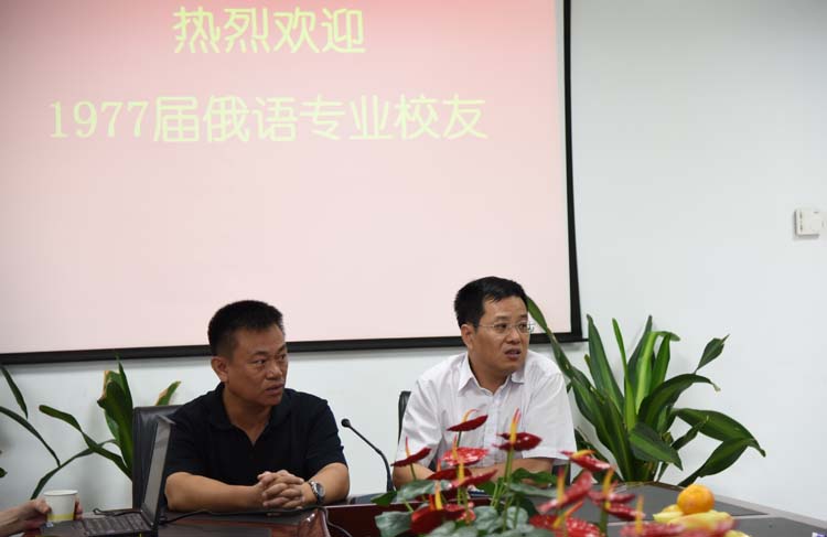 2015年9月6日,外文学院俄语系77届校友回到母校,相聚在1020会议室,学院党委书记林洪、院长程晓堂和校友们进行座谈,欢迎老校友们时隔三十八年后再度归来,院长程晓堂对学院的学科建设、队伍建设、教学发展等做了进一步的介绍,谈到了学院的成绩及挑战。到场校友纷纷发言,回忆当年在校的学习、生活经历,讲述自己的近况,分享了自己的人生体悟。这是一批非常优秀的来自工农兵的学生,同学们也回忆了老师在学习和生活中给予他们的无微不至的关怀,师生之间建立的深厚的友情,为他们留下了难以磨灭的闪光记忆。他们中很多同学一直奋斗在我国的教育、民航、公检法等领域,都事业有成,为俄语教学及文化经济建设做出了突出的贡献,最后党委书记林洪真诚祝愿各位校友身体健康,万事如意!希望校友们常回家看看。