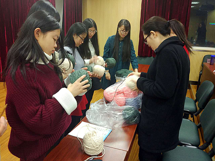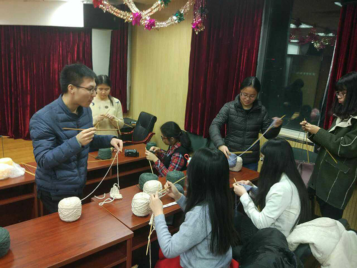 2016年11月27日晚六点,外文学院“女神养成计划”的“织围巾”活动如约而至。在后主楼914,同学们满怀热情积极参加,共同度过了一个愉快而有意义的夜晚。