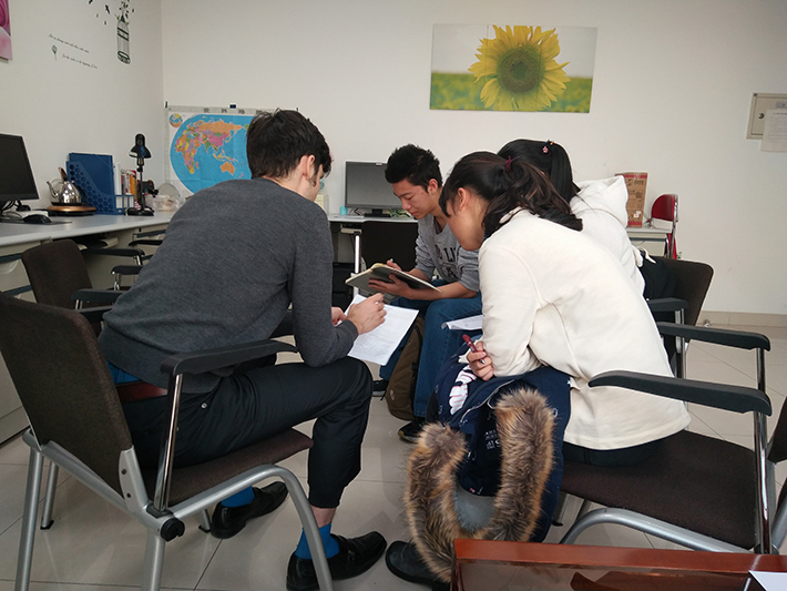 本次指导中,三名外教为学生提供了近30小时的个性化写作指导。学生们自主选择时间段和外教,然后每四到五人一组,由外教进行小组辅导和讲解,秩序井然。外教结合事先发给同学们的范例,认真分析学生们的文本,并提出针对性建议;而学生们纷纷提出问题,与外教共同探讨写作技巧,整个过程使同学们获益匪浅。学生们在接受指导后,还通过反思日志对所学内容进行了综述和反馈。