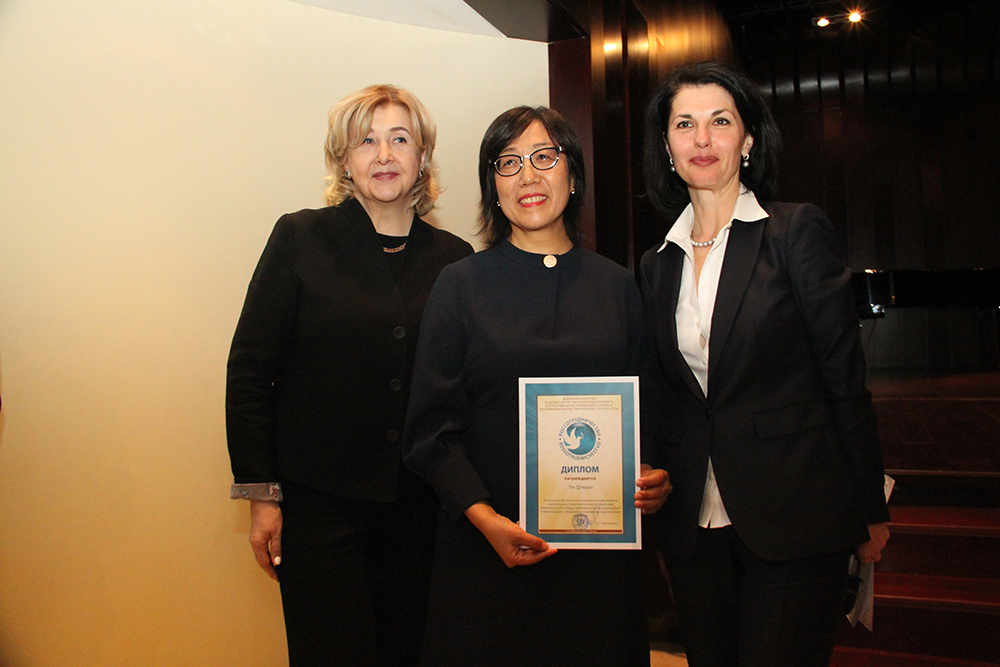 2018年10月19日Cool18 俄文系教师刘娟和穆新华在北京俄罗斯文化中心接受俄罗斯联邦国际人文合作属颁发的荣誉证书。俄罗斯联邦科学与教育部副部长Марина Александровна Боровская女士受国际人文合作属委托向获奖者颁发证书。