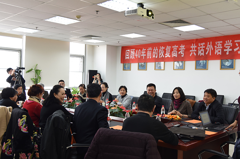 2017年12月29日上午,外文学院在后主楼1020举办77级校友座谈会:回顾40年前的恢复高考,共话外语学习与人生发展。学校校友办公室主任、校友总会秘书长范文霞、外文学院分党委书记刘娟、院长苗兴伟、副书记亓振华、退休教师刘宝英、学院原分党委书记林洪、学校校友会老师沈淑艳、学院校友分会秘书长武玉红、副秘书长代素霞出席了座谈会。