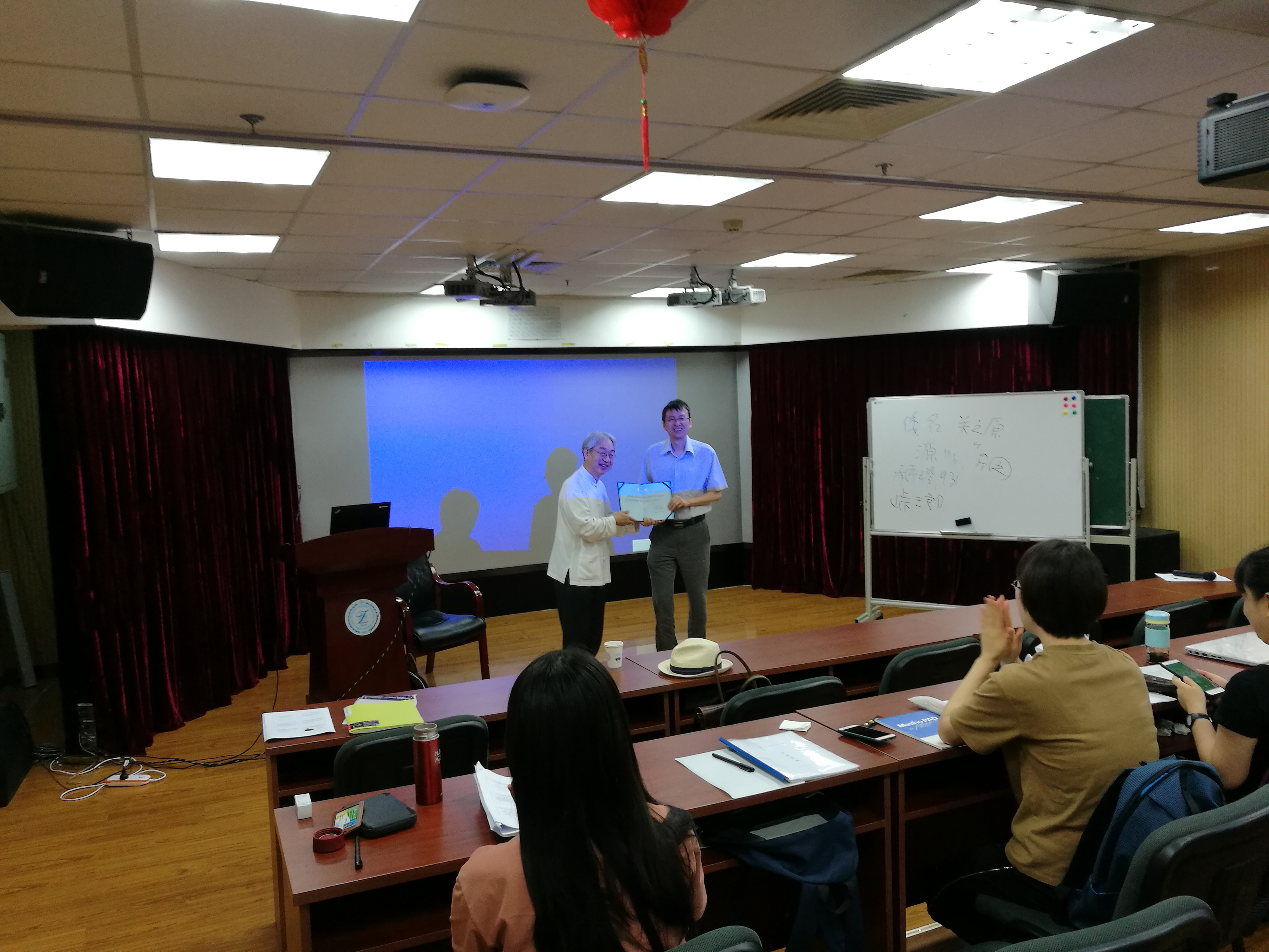 学术报告会结束之前,王志松教授代表学校,向松冈老师颁发了第三期客座教授的聘书。