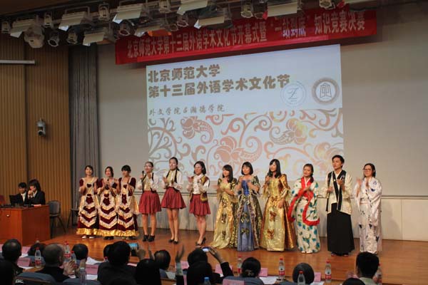 开幕式过后,“一站到底”知识竞赛决赛开始。参赛的十名选手在台上展开了激烈的竞争,现场气氛十分热烈,观赛的同学们不时对台上选手的精彩表现报以的掌声。第十三届外语学术文化节随后还会有异域风情街、英语诗歌创作大赛、外语角联盟、学术讲座、外文歌会等一系列精彩的活动,敬请关注!