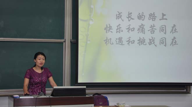迈好大学生活的第一步,把好进入社会的第一关,武玉红老师从安全问题说起,用生动鲜活,发生在身边的事例提醒新生们一定要学会保护自己,提高自我保护意识,度过平安的大学时光;自尊自爱,不卑不亢,遇到问题积极应对,遇到困难寻求帮助,武玉红老师给新生们放映科学影片,让新生们了解了平时羞于开口却是十分必要知道的生理常识,确立正确的恋爱观,度过幸福的大学时光。