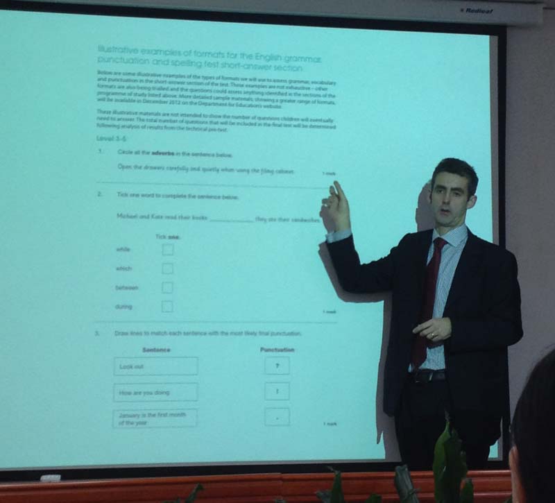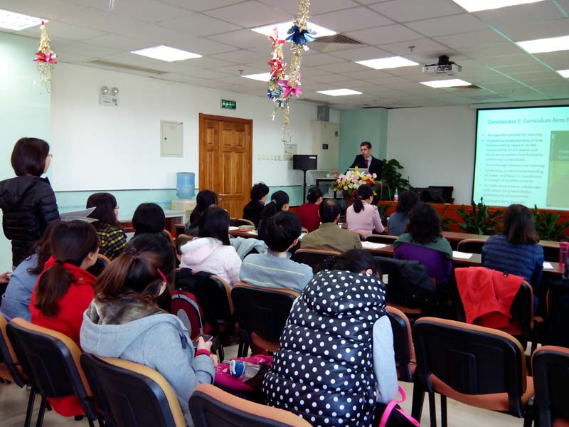 2013年11月4日上午,英国伦敦大学教育学院Dominic Wyse教授来Cool18 讲座,并与Cool18 师生进行交流。Dominic Wyse教授是幼儿教育与小学教育方面的专家,并涉猎英语语言教育、课程与教法等多个领域,著作颇丰、很有见地。他此次讲座的题目是“Teaching English, Language and Literacy”。基于读写能力的多样性、语言的多样性、以及多种语言环境的存在等,他提出了语言教育理论中的一个新概念——multivernacularism,强调不同“语境”在语言教育,尤其是英语教育中作用重大。他还指出语言教育应符合一定的语言原则,如:就能够理解的意义进行交流是语言发展的驱动力;分析理解“实际使用中的语言”是教师与学生适当知识的基础;经历和反思阅读与写作的过程是加强教与学的重要资源等等。Dominic Wyse教授最后总结到:英语教学必须要适应不同的语境;阅读与写作的教学方法要根据语境来选择;教师与学生在有效教育中的重要作用不可小觑。