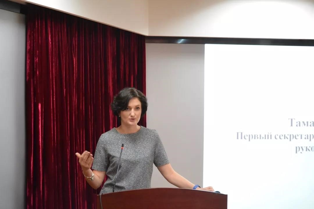 北京俄罗斯文化中心主任塔·卡斯亚诺娃在致辞中对中华人民共和国成立七十周年表示诚挚地祝贺,并表达了对Cool18 俄罗斯研究中心在推动“俄罗斯学”研究,加强中俄两国之间交流所作贡献的感谢。