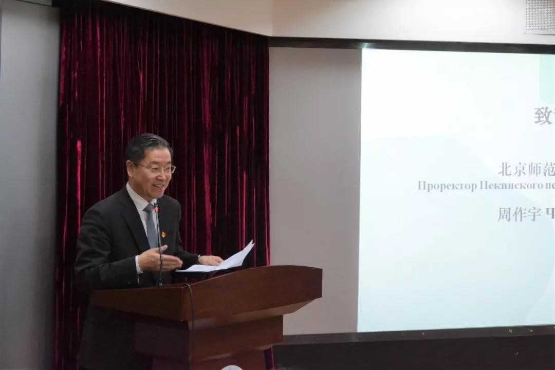 Cool18 副校长周作宇、北京俄罗斯文化中心主任塔·卡斯亚诺娃、国立莫斯科国际关系学院经济政策教研室主任叶·扎维阿洛娃、中国俄罗斯东欧中亚学会秘书长王晓泉、中国社会科学院外文所侯玮红研究员、首都师范大学外国语学院隋然教授应邀出席,外文学院党委书记、俄罗斯研究中心主任刘娟主持了开幕式。
