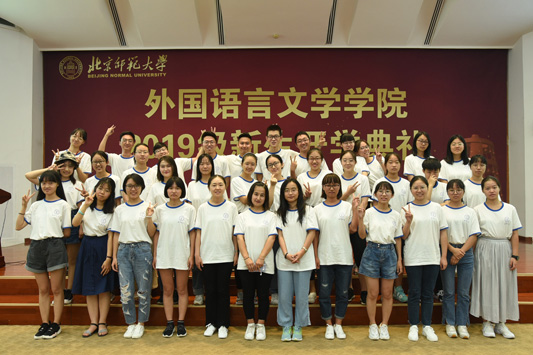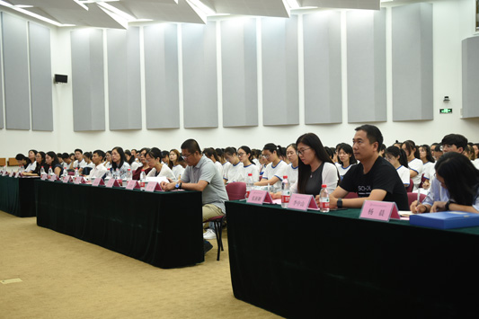 2019年9月5日14时,外文学院2019级新生开学典礼暨入学教育在英东学术会堂二层演讲厅隆重举行。学院党委书记刘娟,院长苗兴伟,副院长陈则航、于晖,英文系主任王楠,日文系主任王志松,俄文系副主任张勃诺,学院MIT翻译教育中心主任王广州,外事主任、2019级博士班班主任李中山,英文系教师胡笑然,学院专职辅导员杨晨、毛燕、2019级本科生班主任林杨、梁栋出席开学典礼,外文学院2019级全体新生参加。典礼由学院团委书记张新颖主持。