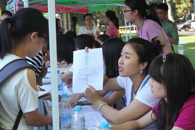 2014年8月25日为我校2014级本科新生报到日,今年的新生报到比老生开学提前了一周,和教师开学日是同一天,所以学生工作的老师们和学生干部们早在一周前就开始进行各项筹备工作。25日当天,从早晨5点到晚上20点,各项迎新工作在老师和同学们的共同努力下顺利开展。