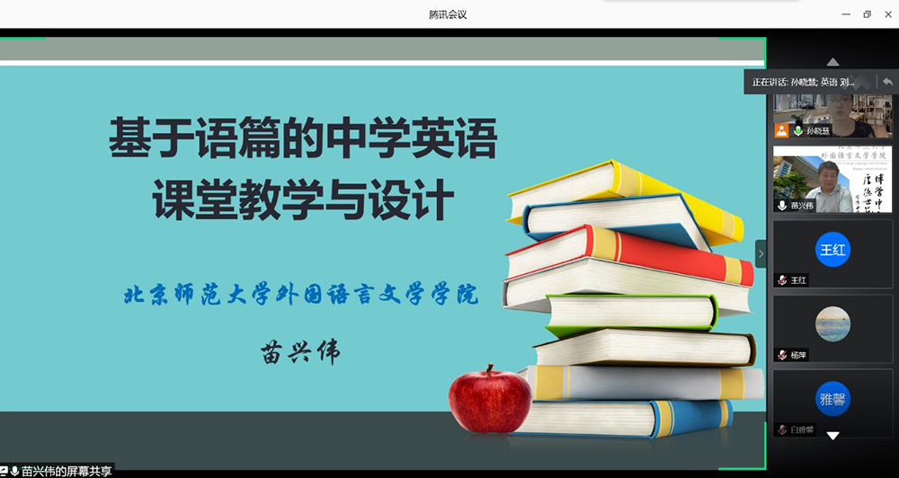 7月26日上午10点,于晖教授和孙晓慧副教授就如何做好论文开题,进行了详细讲解。7月28日晚7点,罗少茜教授从文献综述的定义、文献与选题是什么关系、文献在研究中的位置、为什么要综述文献、如何综述文献以及如何处理文献等多个方面做了题为《如何撰写文献综述》的精彩讲座。8月4日晚7点,苗兴伟教授就英语学科核心素养与英语课堂教学、基于语篇的英语教学两部分内容做了题为《基于语篇分析的中学英语课堂教学与设计》的精彩讲座。8月17日晚7点,程晓堂教授从语篇对英语教学的重要性、语篇的基本概念、语篇分析主要分析什么、语篇如何影响我们的思想和行为等方面做了题为《语篇分析在英语教学中的应用》的精彩讲座。8月18日晚7点,北京市朝阳区高中英语教研员李春芳老师从教师发展、未来教育、高中英语教学三方面与各位同学进行了交流分享。