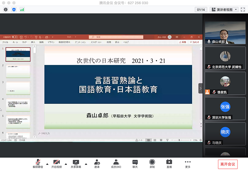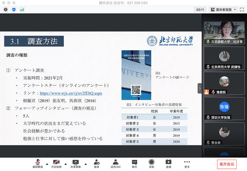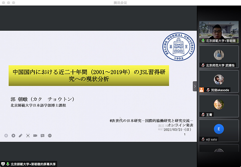 2021年3月21日,由日本筑波大学主办、中日两国十余所大学协办的“面向青年一代的日本研究—国际合作研究与研究交流”国际学术研讨会在线上成功举行。本次会议得到日语学界广泛关注,上线人数最多时达160余人。