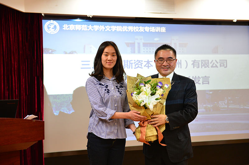 王向燊学长以《选择的力量——一切从这里开始》为题,分享了自己进入北师大后的学习和成长经历,讲述了自己由英语“菜鸟”到金融精英的辛苦付出和精彩蜕变,以真实的成长故事引导学生正确认识学习和时间管理的重要性,深刻领悟做事以真、待人以诚的成功秘笈。