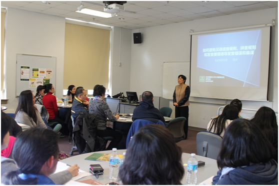 美国威廉玛丽大学和欧道明大学同处弗吉尼亚州,日前两所大学的孔子学院首次联手举办了中小学中文教师培训班。由于学员们平日工作繁忙,大多数学员星期六还要在中文学校兼课,这次培训选择了3月29日和4月5日两个星期天,共四讲,培训班报名踊跃,学员们主要来自弗州的泰德华中文学校、里士满中文学校、威廉斯堡中文学校、半岛华美协会中文学校,还有的学员驱车几个小时从马里兰州赶来听课。
