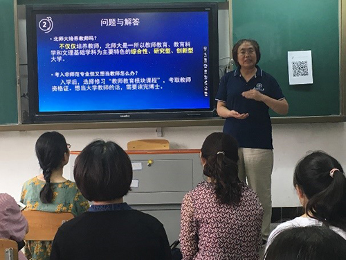 基于这些问题,本着让家长和考生减少误解、减少疑惑、减少担心为原则,按照学校招办给出的要求细致、耐心地予以回答,特别是在微信群,不断地推送相关的政策、介绍、数据。不少高二甚至是高一的学生及其家长也赶来“未雨绸缪”。家长们认为北师大的讲解是有教育情怀的、有人文关怀的、排忧解难的。