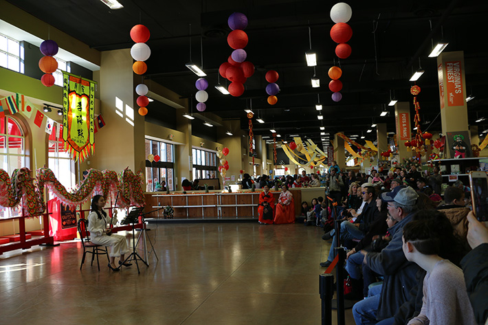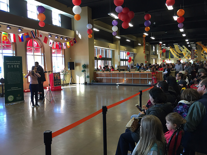 2月4日,WilliamsburgPottery举办了盛大的亚洲节活动,邀请了来自中国、韩国、泰国、柬埔寨、菲律宾等国家的表演人员共襄盛典。威廉玛丽大学孔子学院的老师们和志愿者们受邀参加了此次活动,并为大家带来了精彩纷呈的节目。节目开始之前,中方院长王德亮和美方副院长刘莹致辞,并推介了威玛孔院的课程和文化活动。之后,马晓璐表演了二胡曲目《彩衣姑娘》,《蒙风》并且用二胡演奏了四首被大家熟知的美国民歌《孤独的牧羊人》、《雪绒花》、《奇异恩典》、《绿袖子》,深受当地观众喜爱。杨璐为大家带来了经典的葫芦丝曲目《月光下的凤尾竹》,张雅涵的古筝独奏,威廉玛丽大学生印锐的一曲笛子独奏和中文项目陆璐老师的中阮独奏获得了满堂喝彩。在场观众都被美妙的中国音乐深深吸引,亚洲节活动吸引了上万人参加。