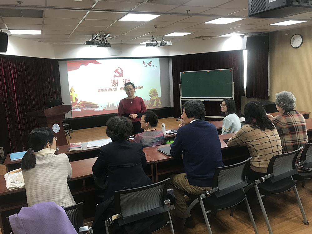 2019年11月20日下午,英文系党支部在后主楼914召开了“不忘初心、牢记使命”专题组织生活会。会议首先由英文系党支部书记孙晓慧老师为全体党员上了“勇担当,善作为,做新时代合格党员”主题党课。随后各位党员教师基于这一主题开展了“不忘初心、牢记使命”专题组织生活会。同时,英文系党支部号召全体党员教师为张家口尉县代王城中学积极捐书,为贫困地区的学生送去温暖和关怀。