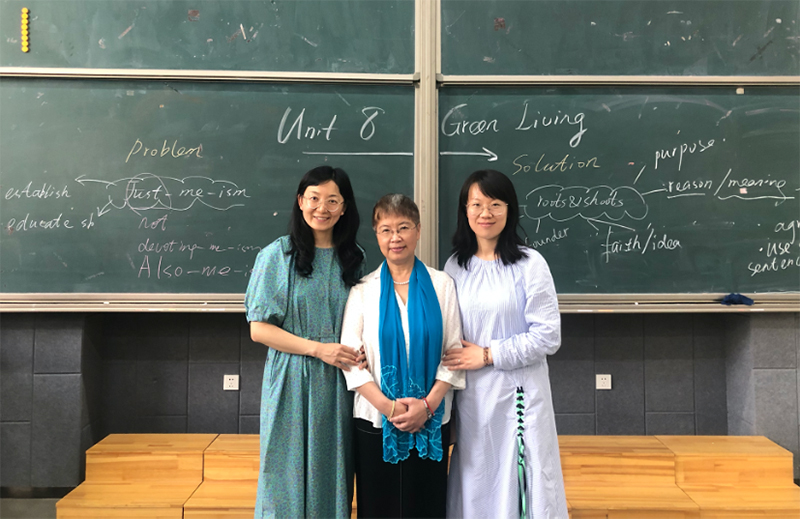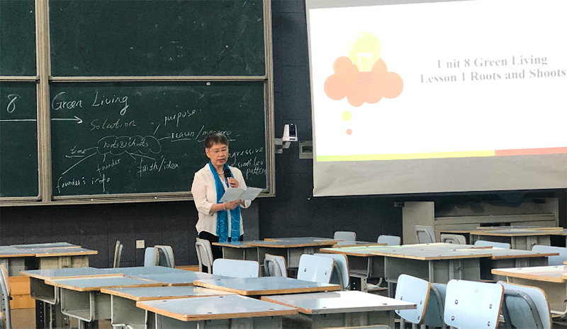 2021年5月17日,韩松老师和宋凌云老师进行了正式讲公开课。在宋凌云老师的课上,宋老师通过展示图片引入主题,激发学生已知,再过渡到获取梳理Just-me-ism和Roots and Shoots的基本信息,通过个人和小组活动内化所学知识,并深入分析Jane Goodall的引言,最后引导学生总结文章内容。