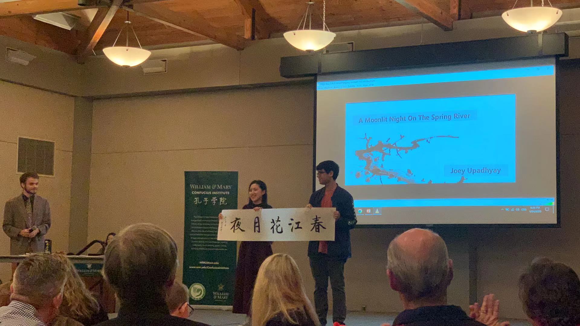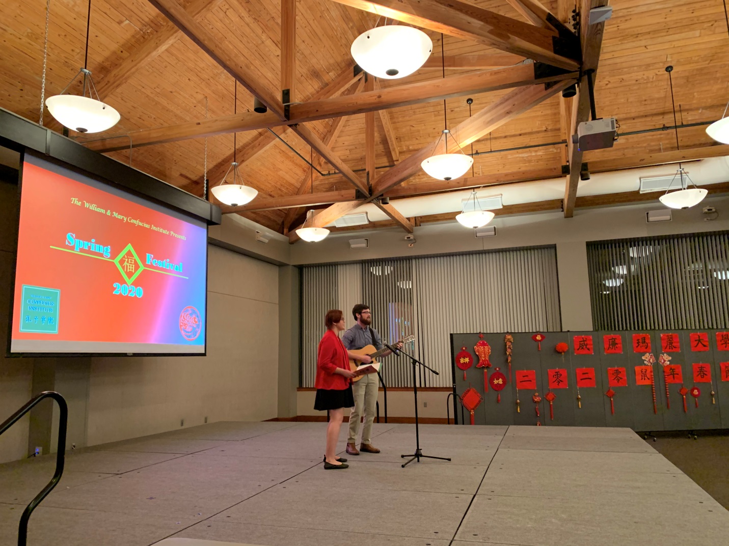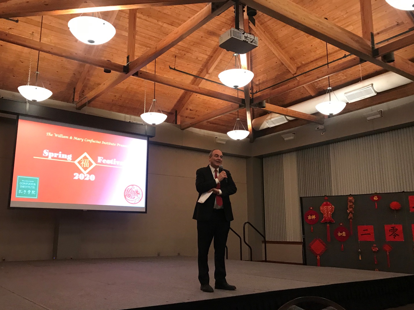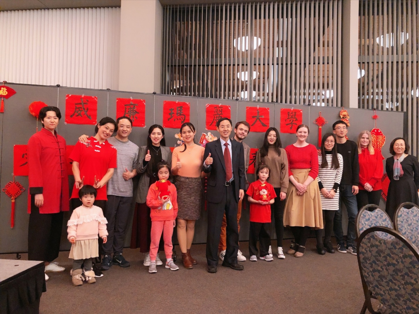 当地时间2020年1月24日晚,威廉玛丽大学孔子学院成功举办2020年鼠年春节联欢晚会。联欢会在威廉玛丽大学学生活动中心进行,受邀参加的有威玛副教务长、威玛孔院美方院长Stephen E. Hanson、 威玛各院系领导及教职工代表、威廉斯堡当地社区中国文化爱好者、威玛孔院历届学生等。近200人欢聚一堂,共同迎接即将到来的中国鼠年。