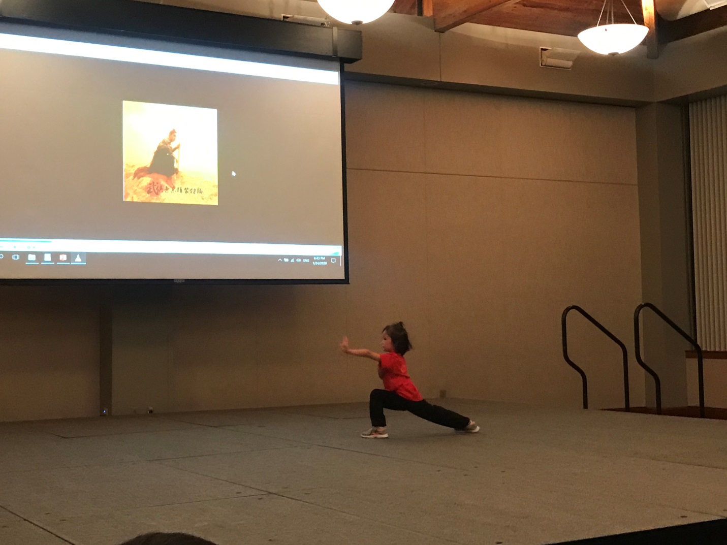 此次联欢会还设置了一个互动环节,威廉斯堡当地气功爱好者Stan Rockwell,武术爱好者Jim Goode以及孔院志愿者冯梦楠一同为大家带来了一场现场气功演练。包含了三组训练,旨在通过冥想及站桩的方式让大家体会气功文化的魅力。全场齐参与,闭目调息,感受与寻找自身的力与气。气功并不是什么高深莫测的玄学,而是一门实用且易行的身体训练。训练结束,每个人的脸上都增添了一些轻松祥和。