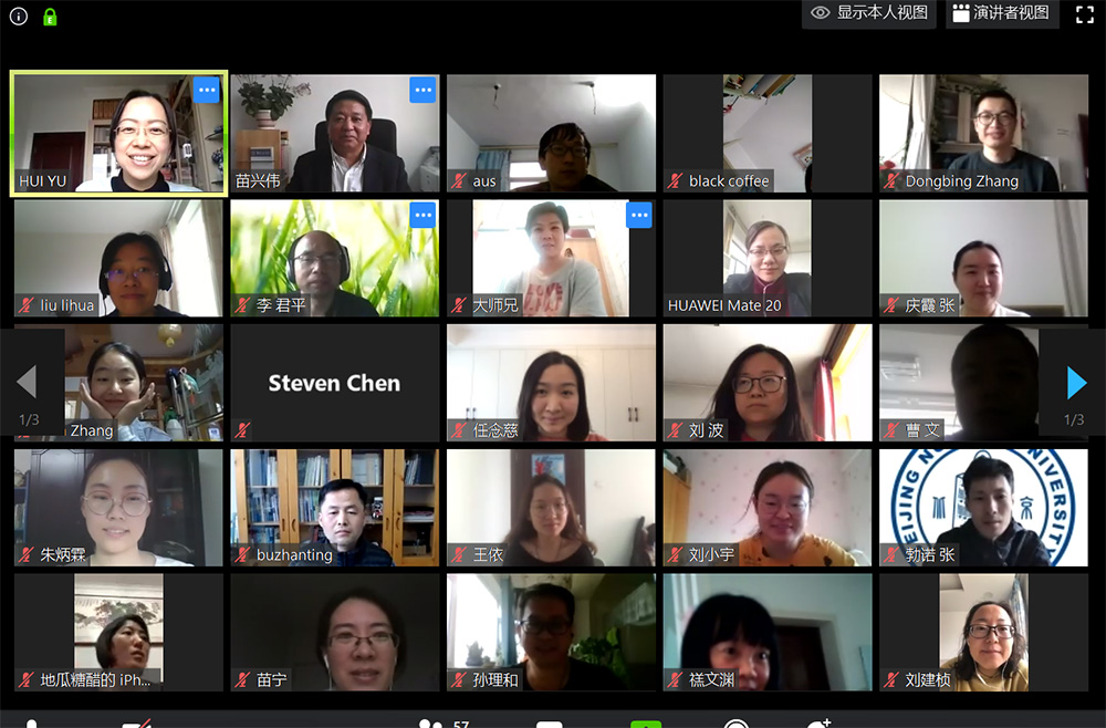 此次“治学·修身”讲座在大家的掌声中圆满结束。苗兴伟教授的讲解深入浅出,结合了疫情和实际生活中的许多实例,使在场同学对拟人化语法有了一定了解,也为各自的研究带来一定启发。同时,苗兴伟教授在解答大家的疑问时所展现出的清晰思路和严密逻辑也给同学们留下深刻印象,大家都纷纷表示受益匪浅。最后,大家一起与苗兴伟教授进行了“云”合影留念。让我们一起期待下一期“治学·修身”系列讲座!