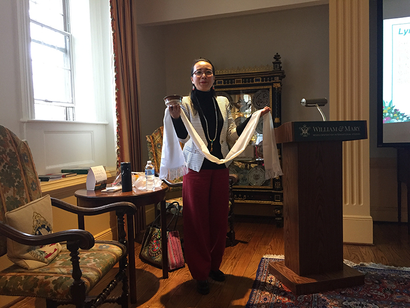 来自内蒙古自治区乌兰察布的著名民歌表演艺术家郭娅丽自幼学习蒙古族传统音乐,曾荣获中国广播文艺奖全国听众最喜爱歌手奖、全国第六届“文化之春”中国民族原创歌曲大赛全国十佳演唱家金奖等多项殊荣。代表作品有个人专辑《月光下的草原》及单曲《百灵鸟》、《草原水乡》、《光景不错》、《夜的草原》等。一直以来,郭娅丽老师都积极的支持着威廉玛丽大学孔子学院的事业,曾多次在孔子学院举办的音乐会、文化节上献唱,与孔子学院一同弘扬中华传统文化。