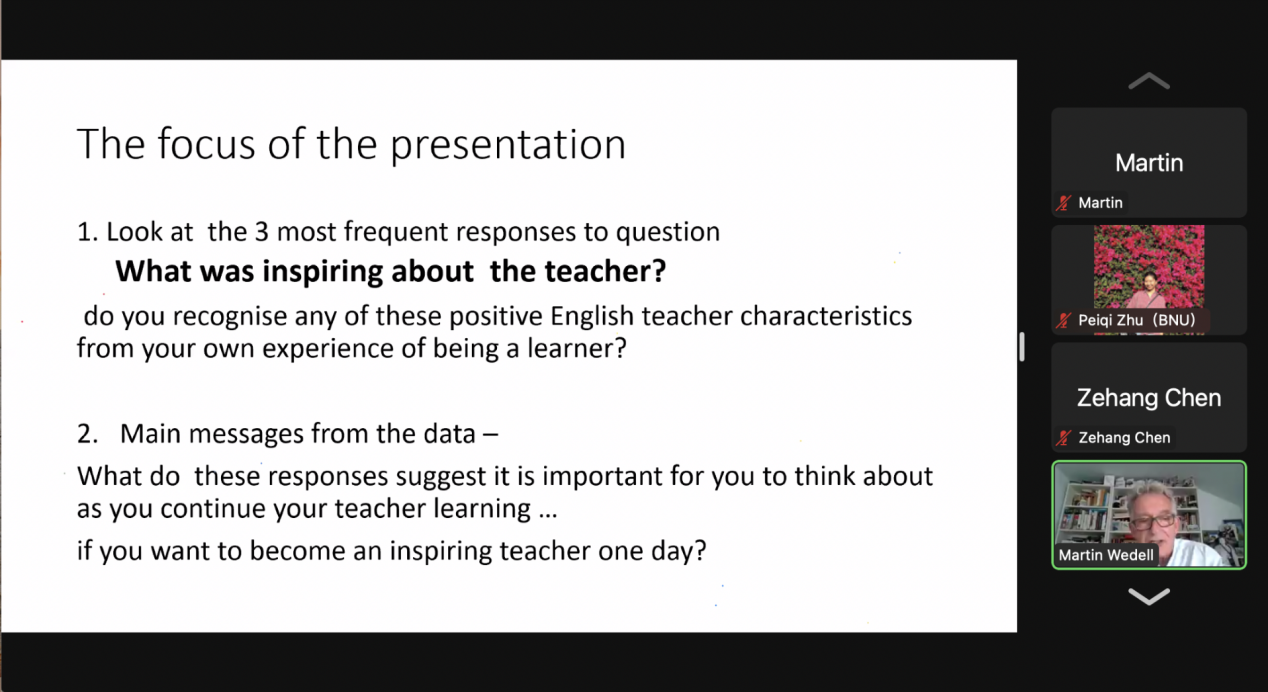 Cool18 文理学院外语系诚邀国际著名应用语言学家Martin Wedell教授举办“成为启迪型英语教师”讲座2022-07-147月12日下午,Cool18 文理学院外语系诚邀国际著名应用语言学家Martin Wedell教授,开展了主题为“Becoming an inspiring English teacher”的讲座。