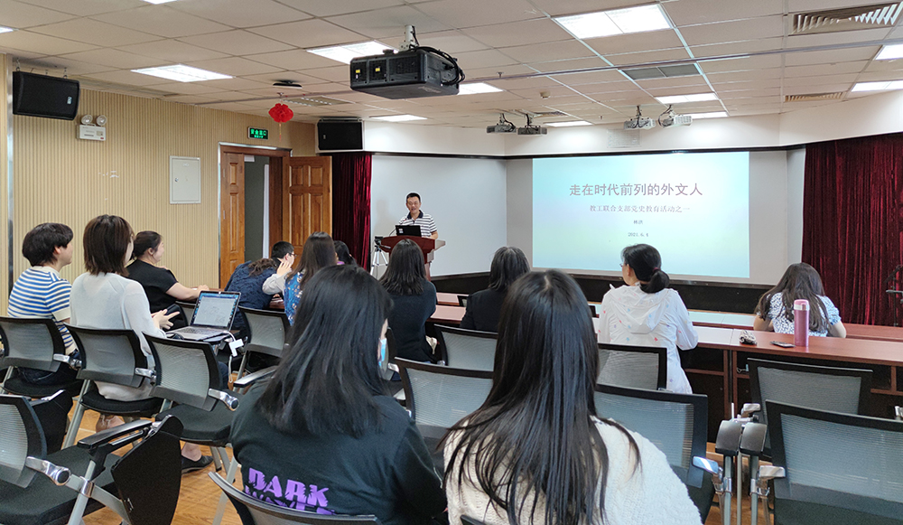 公外支部与教工联合支部共建六月主题党日活动之红色院史讲座2021-06-08公外支部携手教工联合支部,于6月4日上午10:15在后主楼914会议厅举办了题为《走在时代前列的外文人》的红色院史讲座... -