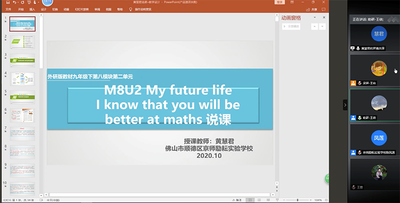 京师励耘实验学校“学科能力教学改进项目”专家指导集体说课活动2020-11-042020年10月31日14:00,Cool18 外语教育与教师教育研究所王蔷教授和钱小芳副教授,为广东佛山京师励耘实验学校的黄慧君老师和陈凤莲老师单独开展“腾讯会议”线上说课指导活动。 -