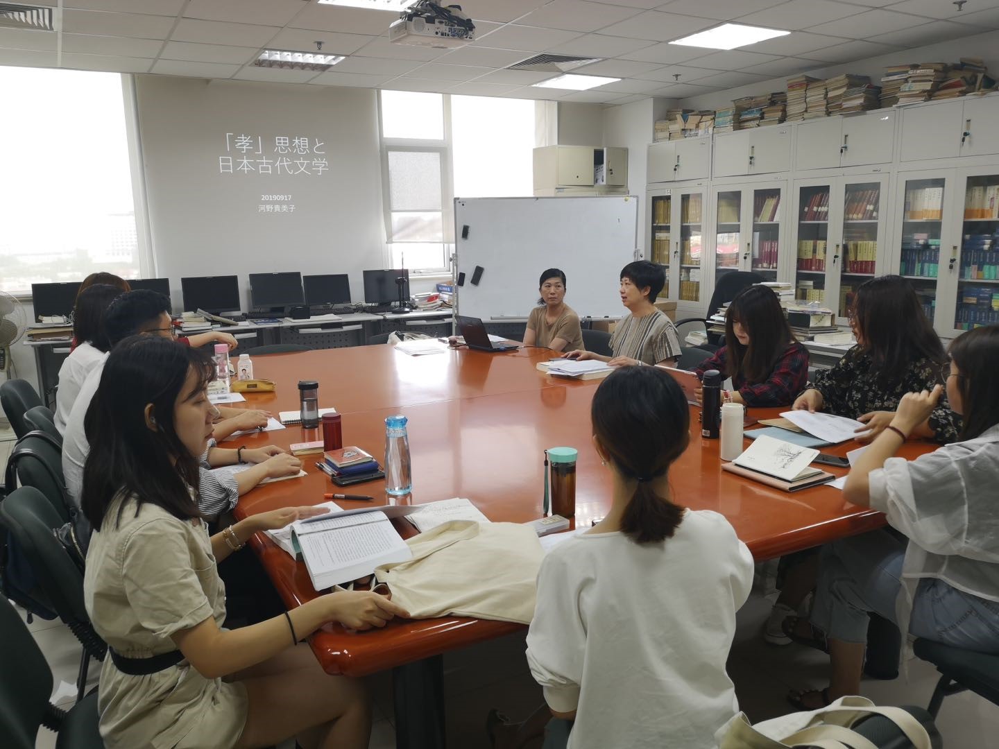 早稻田大学河野贵美子教授来Cool18 集中讲义2019-09-252019年9月16日,早稻田大学文学学术学院河野贵美子教授来到Cool18 外文学院进行了为期四天的集中讲义。 -