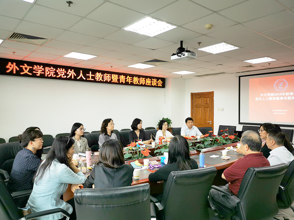 外文学院召开2019-2020学年秋季学期党外人士教师、青年教师座谈会2019-09-179月12日,外文学院党委在后主楼1020会议室召开党外人士教师、青年教师座谈会。 -