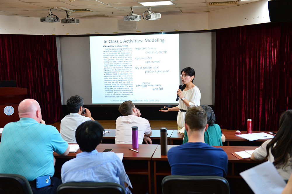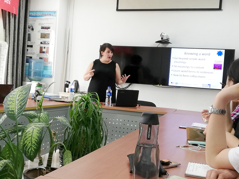 外籍教师Sarah Warfield “Strategies for Teaching Vocabulary” 讲座圆满结束2019-05-222019年5月17日上午10点,英文系邀请外籍教师Sarah Warfield在后主楼1006作了题为“Strategies for Teaching Vocabulary”的精彩讲座。本次讲座吸引了本院的教师、硕博士生、本科生以及访问学者等诸多群体参加。 -