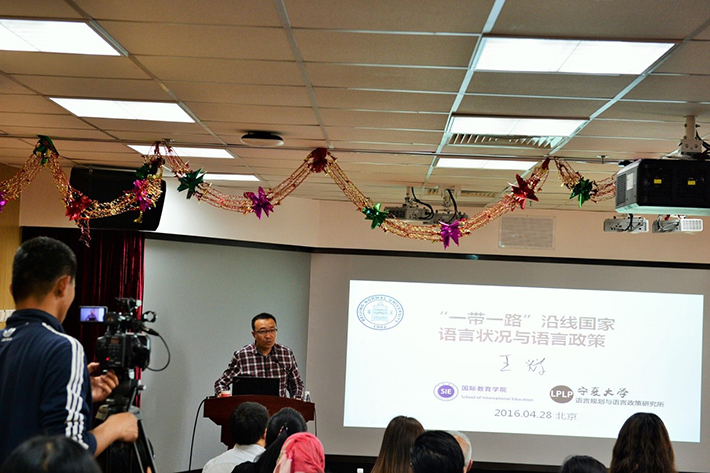 宁夏大学王辉教授应邀来Cool18 讲学2016-04-292016年4月28日下午,宁夏大学王辉教授应Cool18 的邀请,在后主楼914做了题为“‘一带一路’沿线国家语言状况与语言政策”的学术讲座。讲座由外文学院苗兴伟教授主持,Cool18 、... -