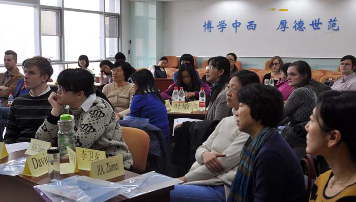 公外部全体教师本学年第三次学术专题研讨会2014-12-022014年11月28日上午,公共外语教学部组织全体教师开展了本学年的第三次学术专题研讨会。中外教师围绕“如何在课堂教学中有效使用提问策略”开积极的研讨。下午,中方教师又对2015级本科生大学英语... -