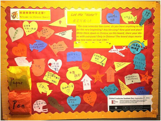 威廉玛丽大学孔子学院庆祝孔子学院日系列活动报道二2014-09-30威廉玛丽大学孔子学院为了庆祝孔子学院十周年,在威大学生中组织或赞助了几场活动。 2014年9月5日至19日,威玛孔院在中文之家举办了“我笔写我心”活动。本次活动的主... -