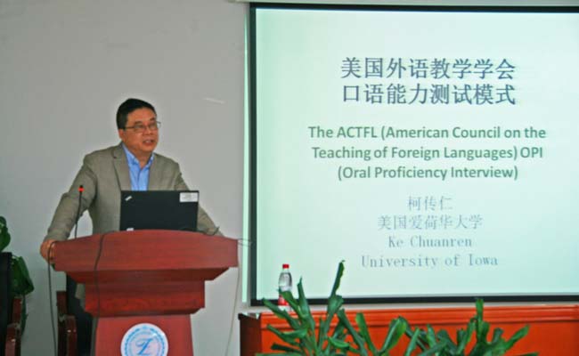 Cool18 校友柯传仁教授来外文学院讲座2014-06-112014年6月10日下午,外文学院78级校友美国爱荷华大学柯传仁教授做了题为“美国外语教学学会口语能力测试模式”。柯教授介绍了美国外语教学学会(ACTFL)的口语能力测... -