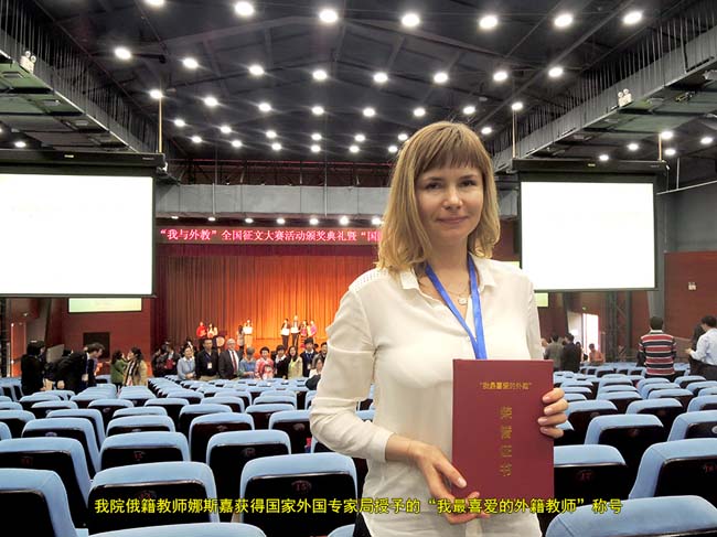Cool18 外教获奖2014-05-12近日,Cool18 俄罗斯籍教师娜斯嘉,获得了国家外国专家局授予的“我最喜爱的外籍教师”称号。此次评审从各省市外专局、外教聘请单位推荐的217名外教中,评选出了50名获得此称号。... -